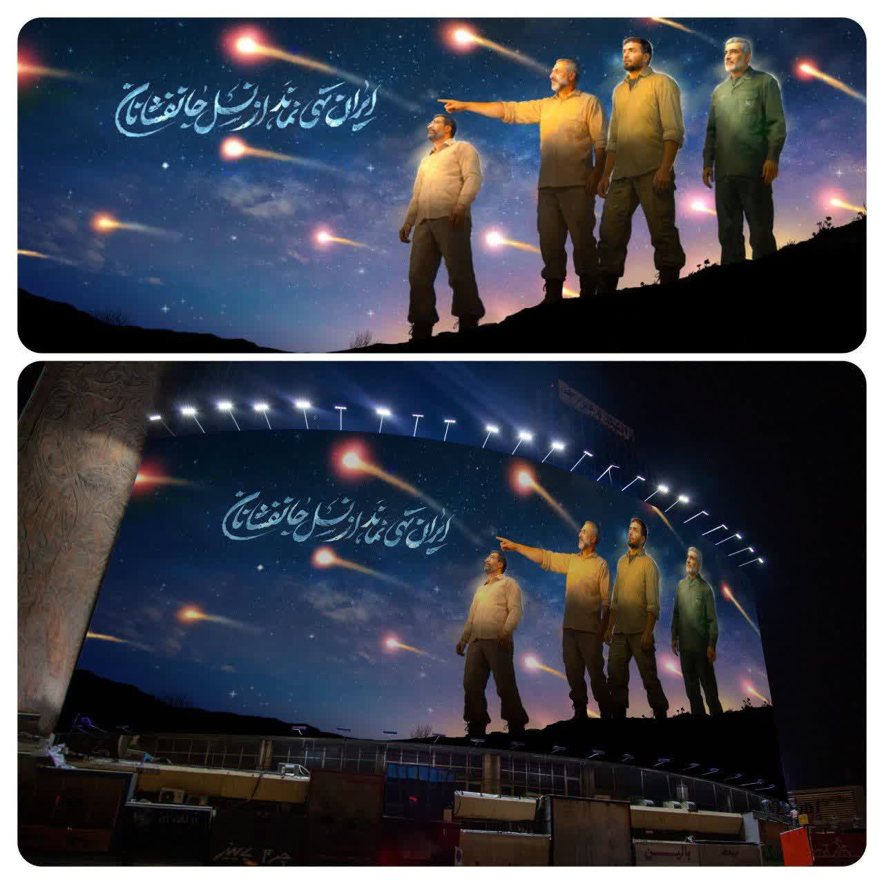 به مناسبت سالروز شهادت شهید حسن طهرانی مقدم و به یاد شهیدان سردار امیرعلی حاجیزاده و سردار محمود باقری از جدیدترین دیوارنگاره میدان ولیعصر (عج) رونمایی شد.