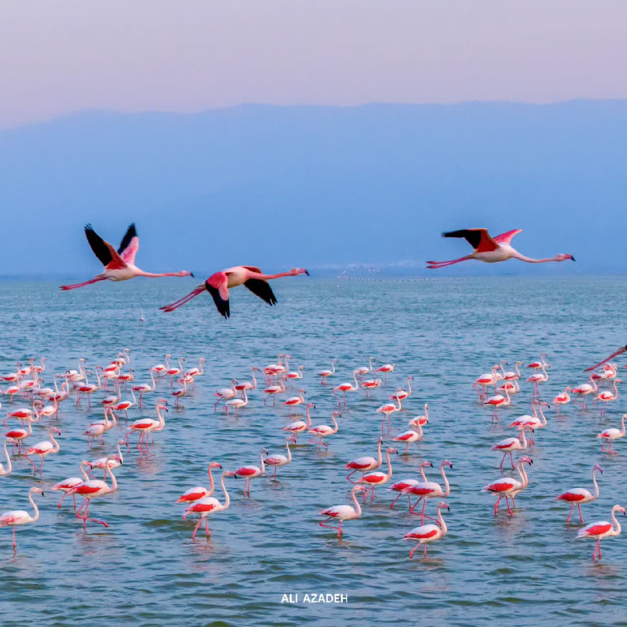 تصویری از فلامینگوهای تالاب میانکاله را مشاهده می کنید.
