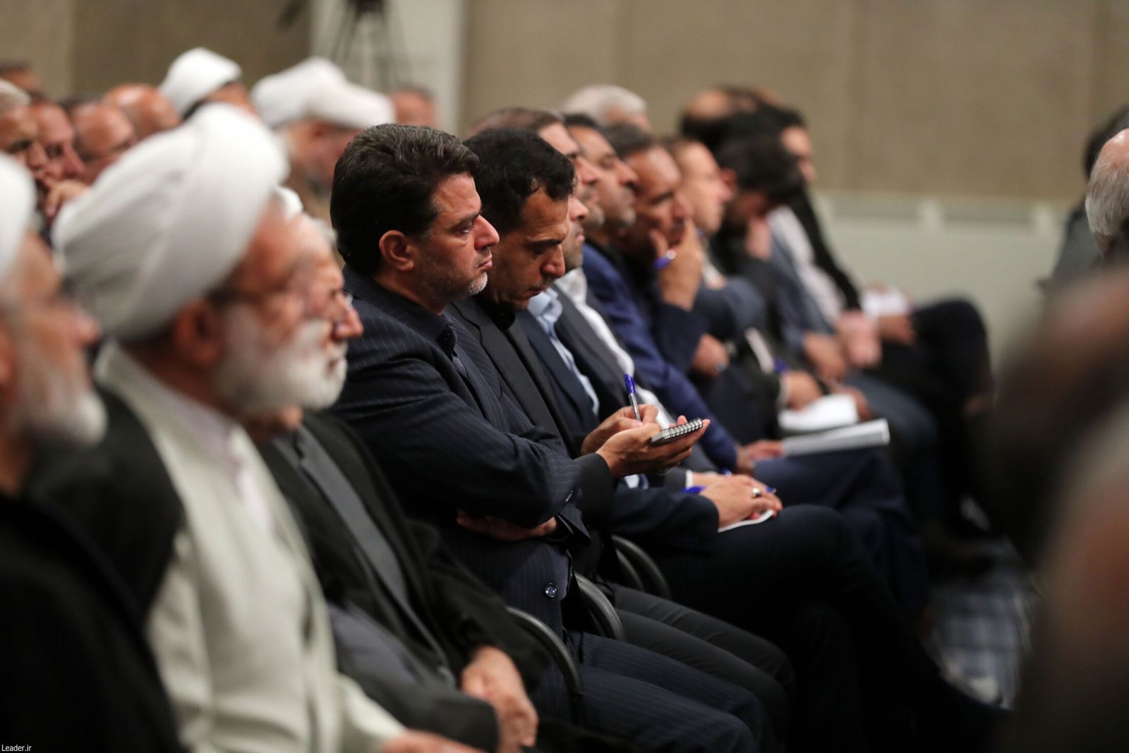 حضرت آیتالله خامنهای انسجام مجموعه ارکان نظام را نیاز کشور و نظام و مردم دانستند و با اشاره به حضور رئیس جمهور منتخب به عنوان نماینده مجلس دوازدهم در این دیدار، افزودند: همچنانکه همیشه مجلس را به تعامل سازنده با دولتها فراخواندهام، به دولتها نیز همکاری با مجالس را سفارش و تأکید کردهام.