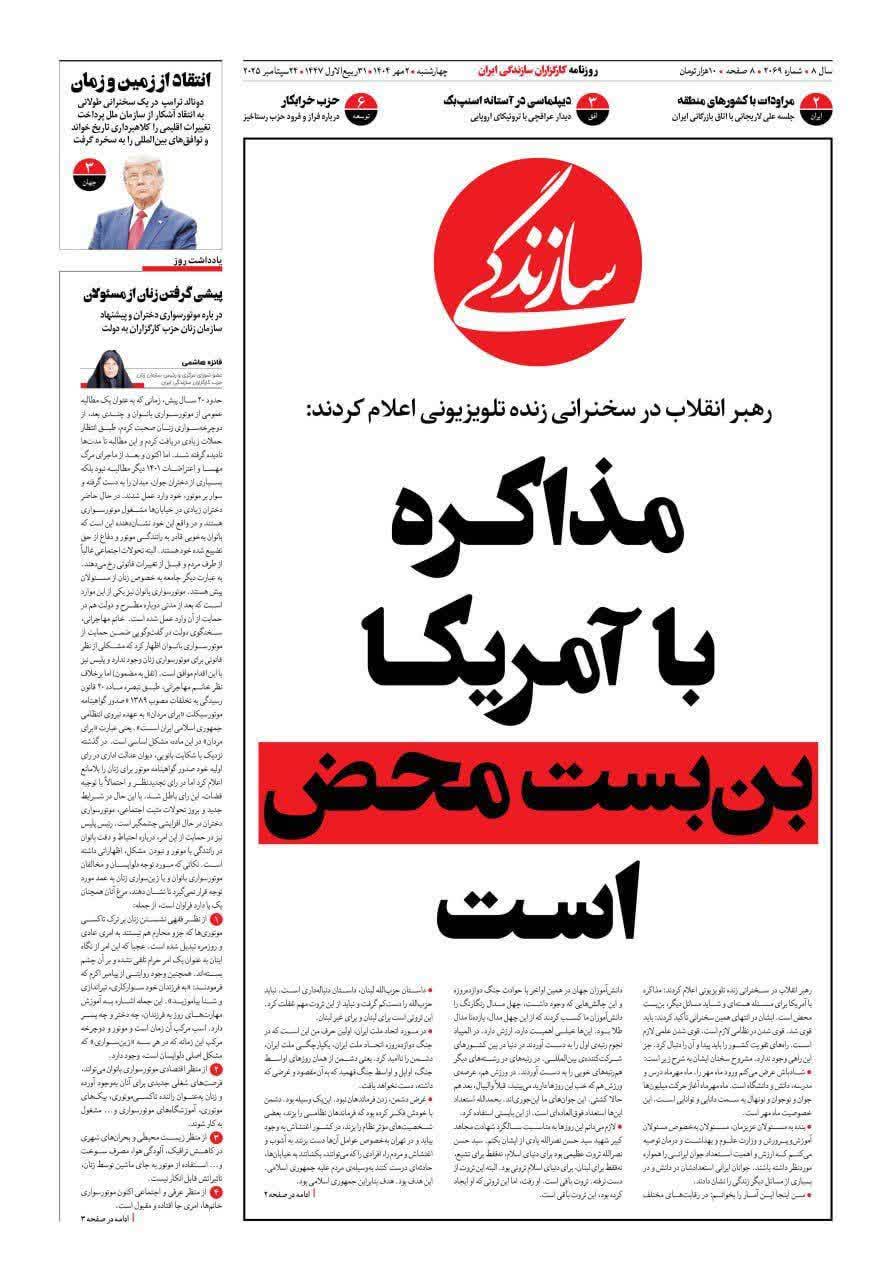 دو روز پیشتر از آن هم یعنی 27 شهریور، گفتگو با محسن هاشمی به عنوان تیتر اصلی این روزنامه انتخاب شده بود که وی تاکید کرده بود باید با آمریکا مذاکرات جامعه و بده بستان داشته باشیم!