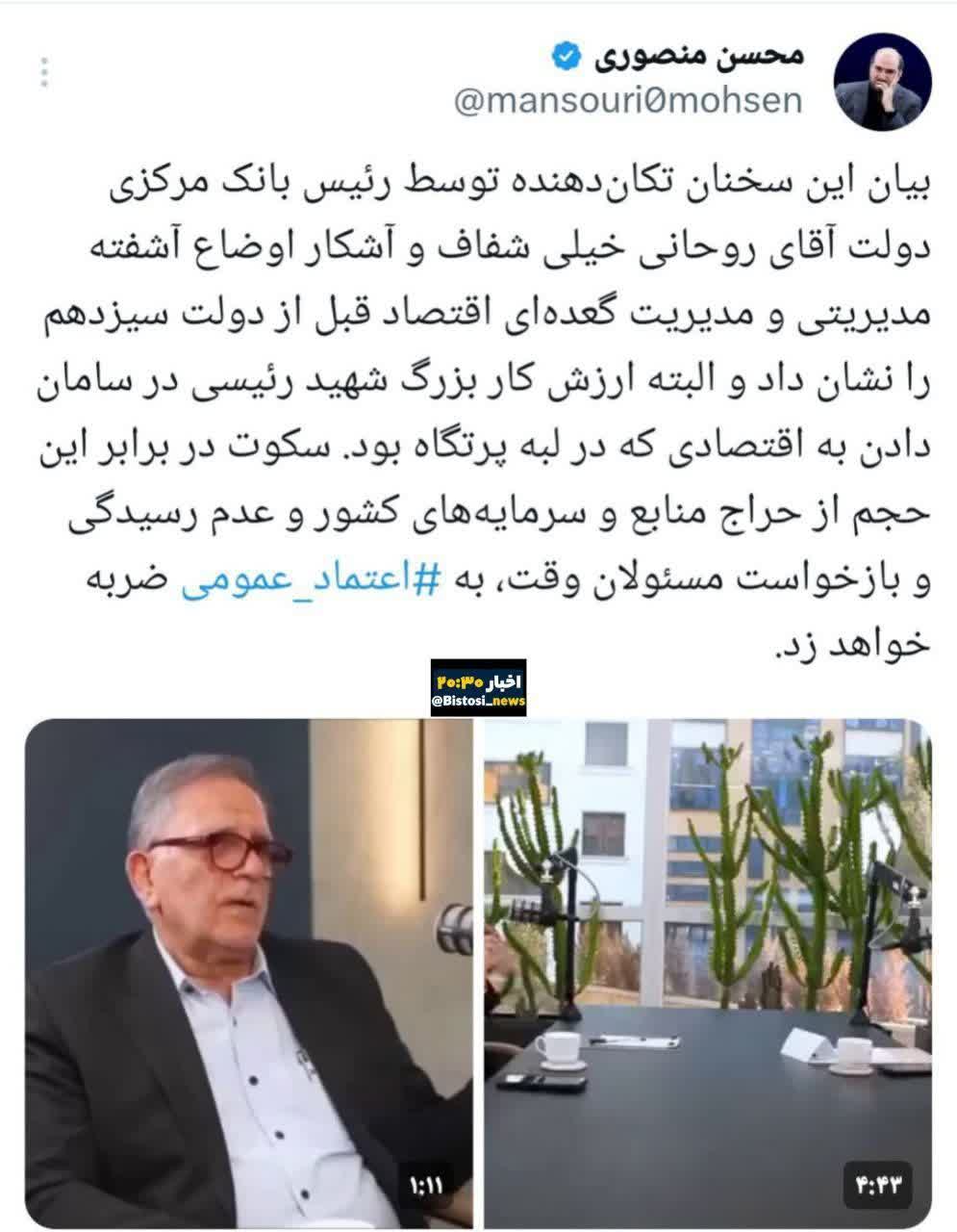 برچسب ها: واکنش محسن منصوری , به سخنان سیف
