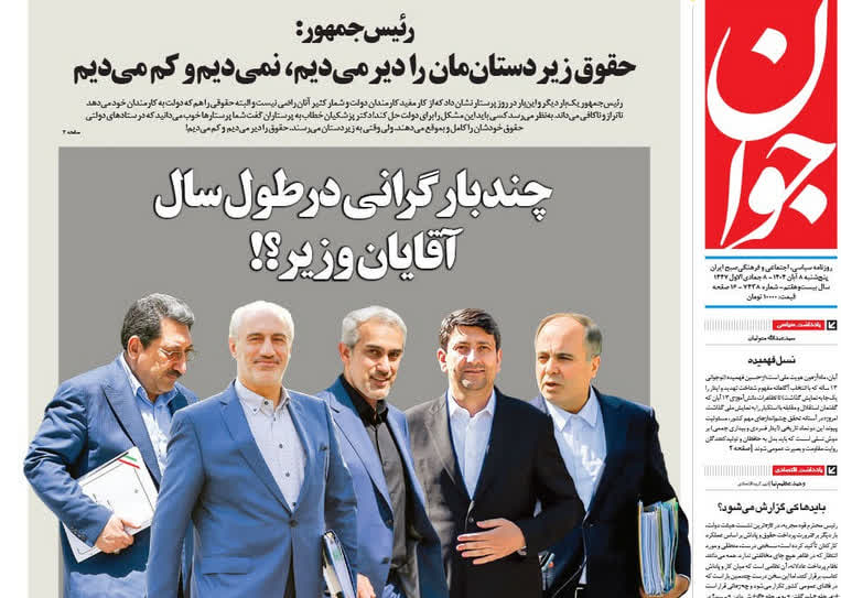 صفحه نخست روزنامه جوان با تصویری از وزرای دولت چهاردهم به گرانی ها واکنش نشان داده است.
