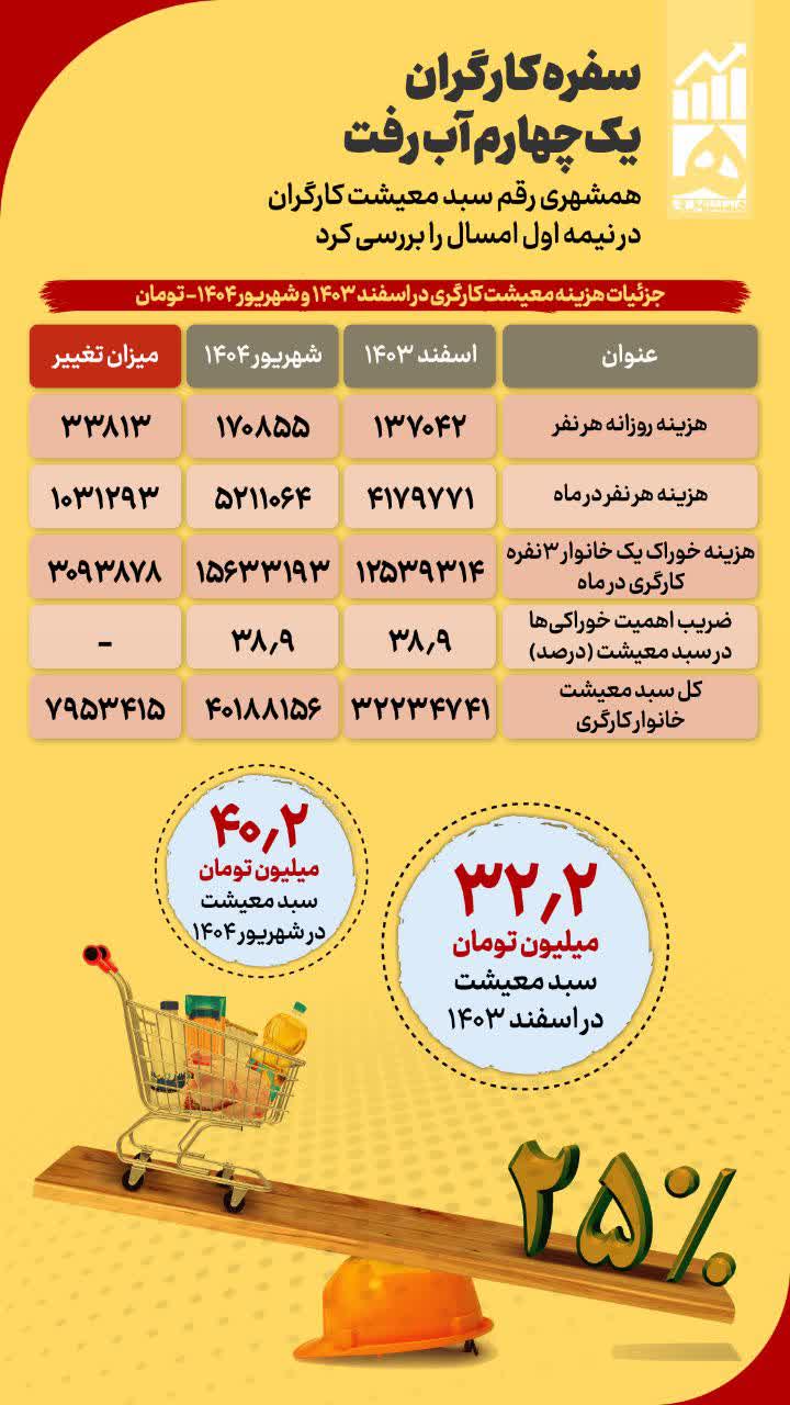 جزئیات هزینه معیشت کارگری در اسفند ۱۴۰۳ و شهریور ۱۴۰۴ را به تومان بخوانید.