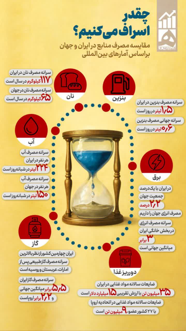 اینفوگرافی از مقایسه مصرف منابع در ایران و جهان براساس آمارهای بین المللی را مشاهده می کنید.