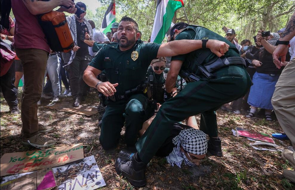 دستگیری دانشجویان معترض حامی فلسطین در دانشگاه فلوریدای جنوبی در شهر تامپا ایالت فلوریدا آمریکا. (زوما)