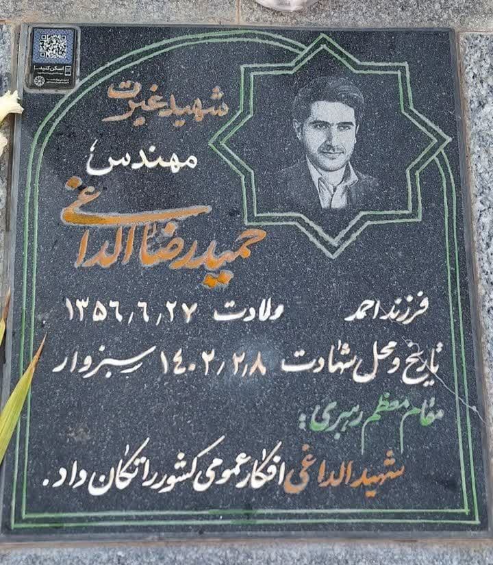 تصویری از سنگ مزار شهید غیرت حمید رضا الداغی را مشاهده می کنید.
