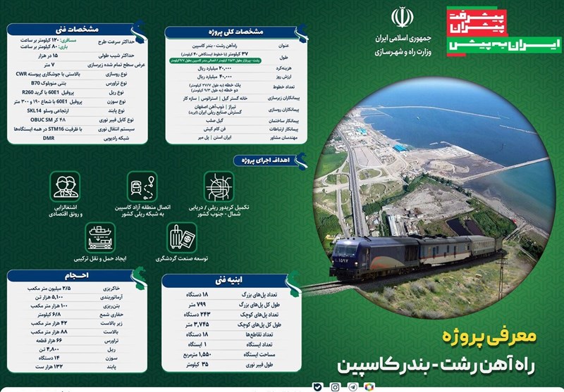 پروژه راهآهن رشت ـ کاسپین که سال ۱۳۸۵ کلنگ زنی آن انجام شد امروز و پس از ۱۸ سال با حضور دکتر مخبر و دستیار ویژه پوتین به بهره برداری رسید.