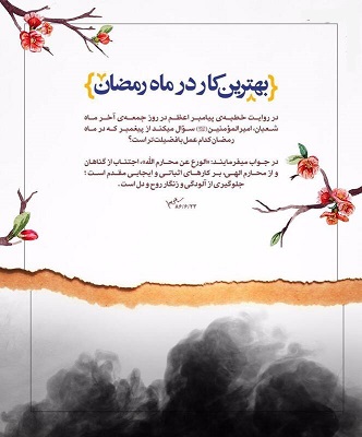 حضرت علی (ع) از پیامبر سوال کرد که بهترین اعمال در این ماه چیست و پیامبر اعظم (ص) فرمود: یا اباالحسن! برترین اعمال در این ماه پارسایی از آن چیزی است که خدا حرام کرده است.